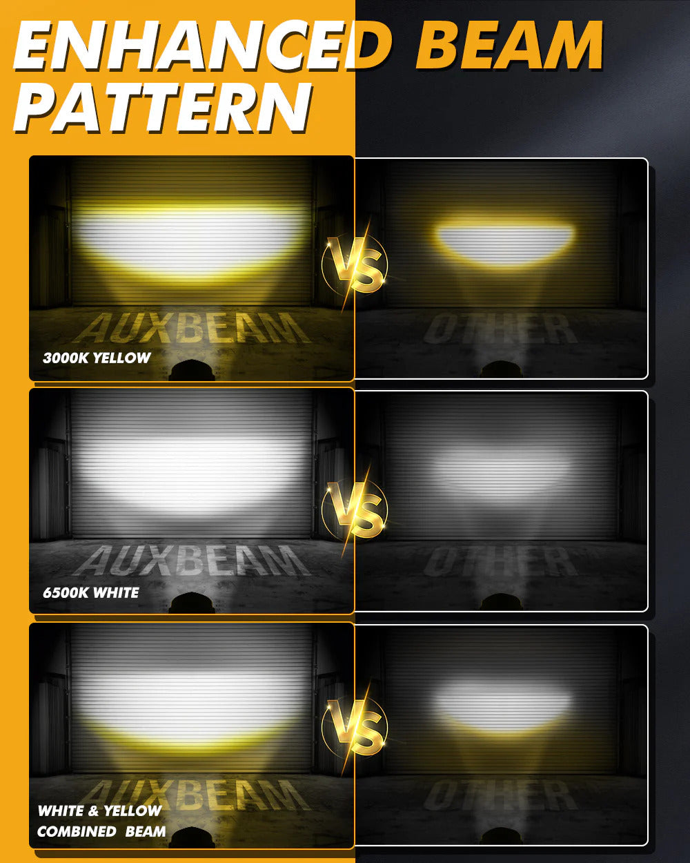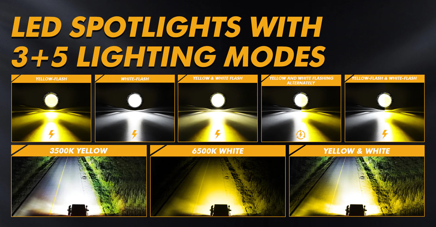 - Seamlessly switch between 3000K Yellow, 6500K Cool White, and Yellow & White Combo based on your driving needs for optimal driving visibility.